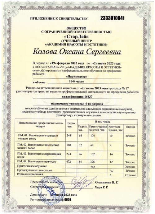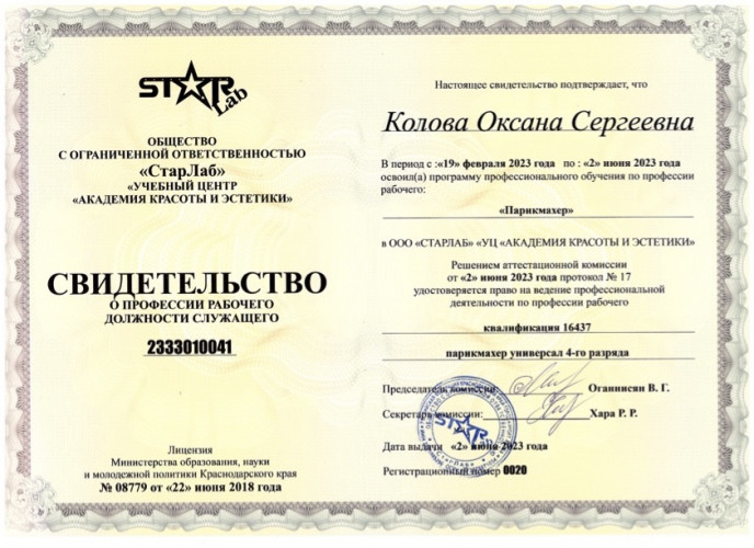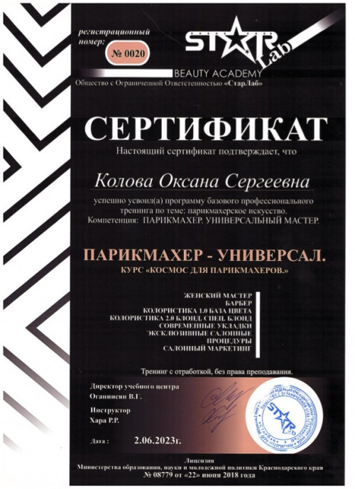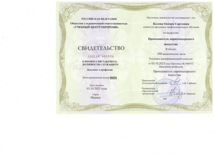 Квалификация: парикмахер-универсал.
